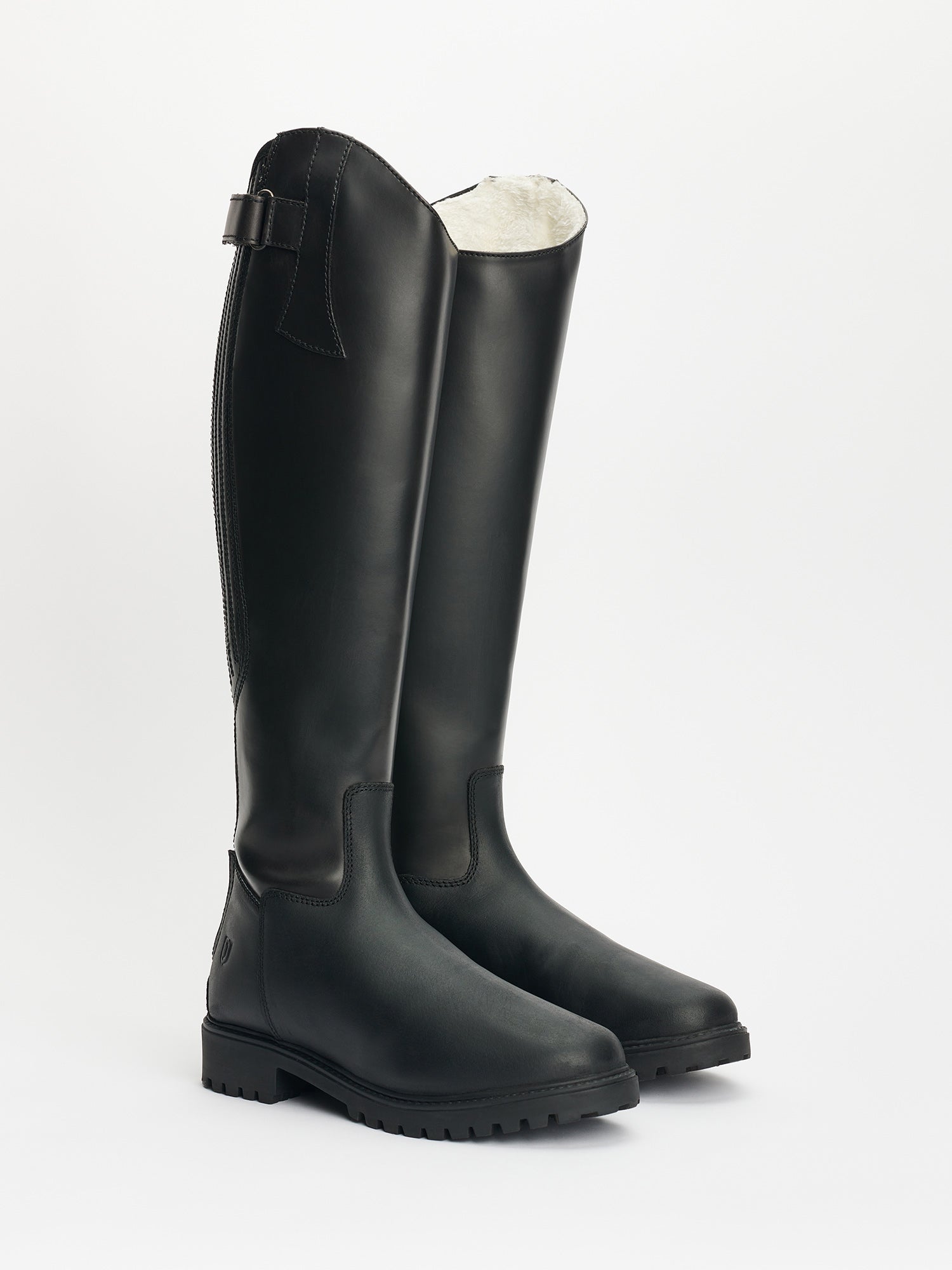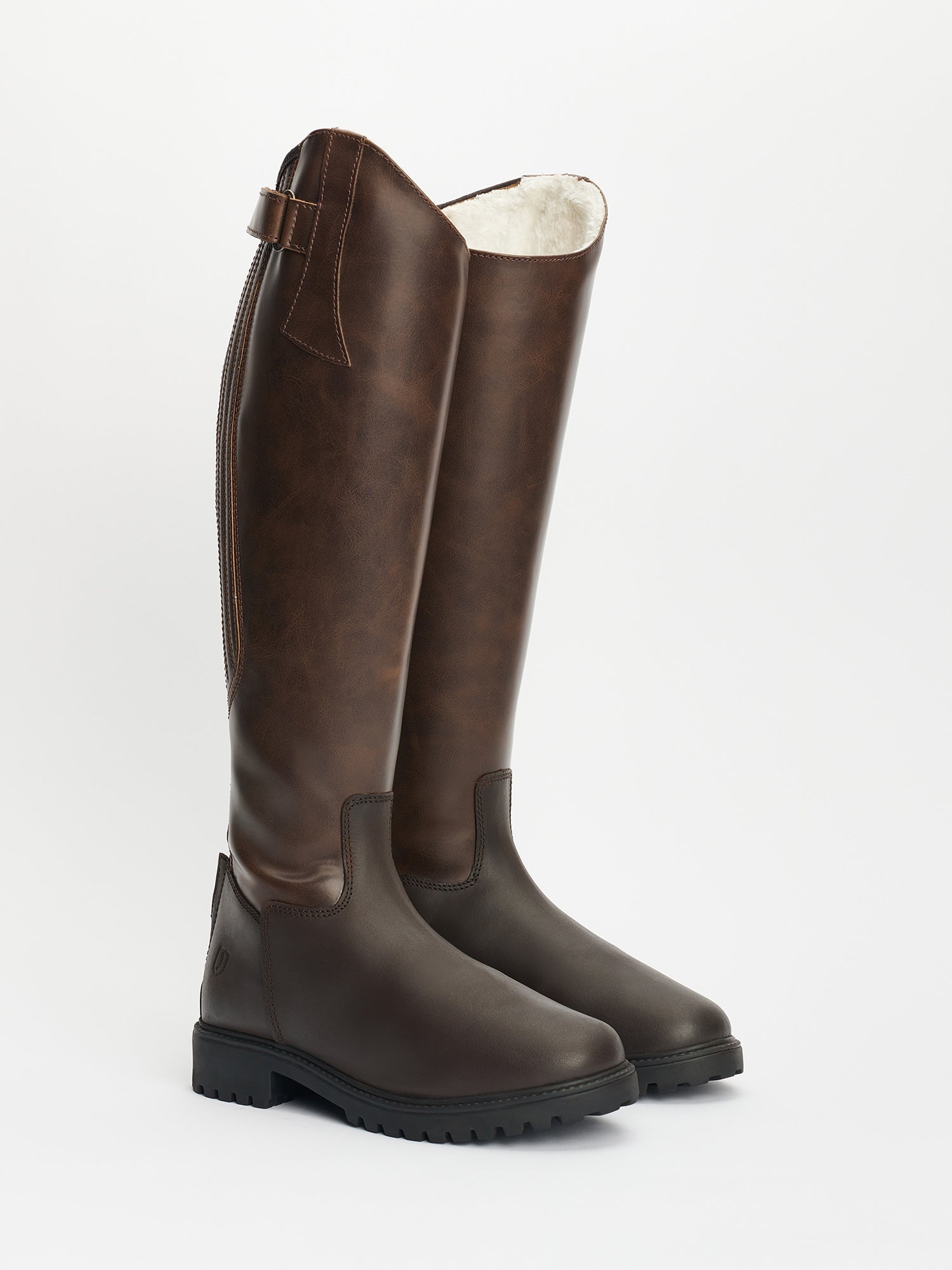 Upptäck den ultimata vinterridstöveln! Vår varmfodrade ridstövel i konstläder är det perfekta valet för den kalla årstiden. Med en varm och skön syntetpälsfoderning kommer dina fötter att hållas varma och bekväma under långa ridturer. Dess robusta yttersula ger bra grepp och säkerhet i sadeln, medan den dolda resåren längs med dragkedjan säkerställer en optimal passform. Ridstöveln finns i både svart och brunt.