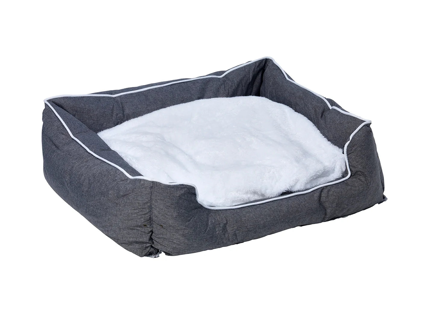 Bädden har en dubbelsidig innerkudde som erbjuder en mjuk och plyschig yta på ena sidan, perfekt för kalla vintermorgnar eller mysiga vilostunder. Den är lätt att hålla ren då den kan maskintvättas i 30 grader, vilket gör det enkelt att ta hand om din hunds sovplats.