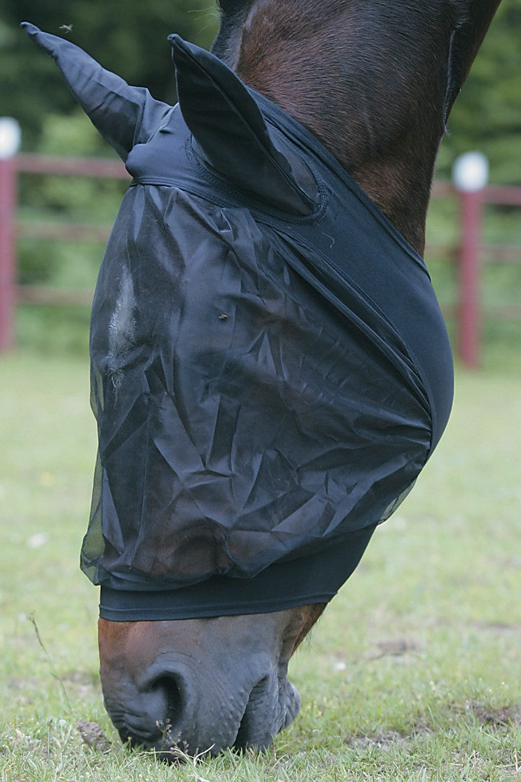 Flughuva med öron och fint moskitnät. Den här har elastisk spandex runt nos och nacke för en optimal passform.