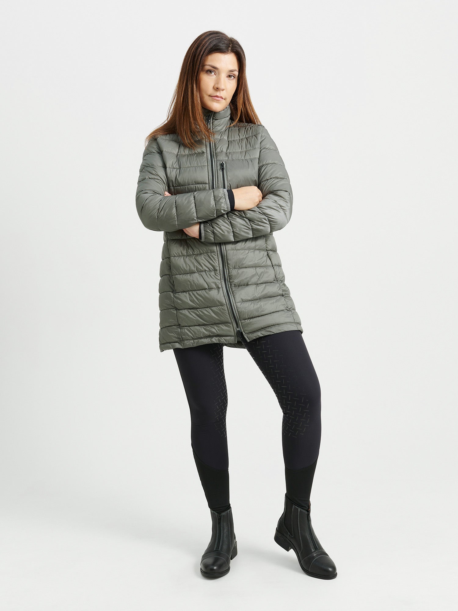 - Tvåvägsdragkedja framtill för ökad flexibilitet vid ridning.