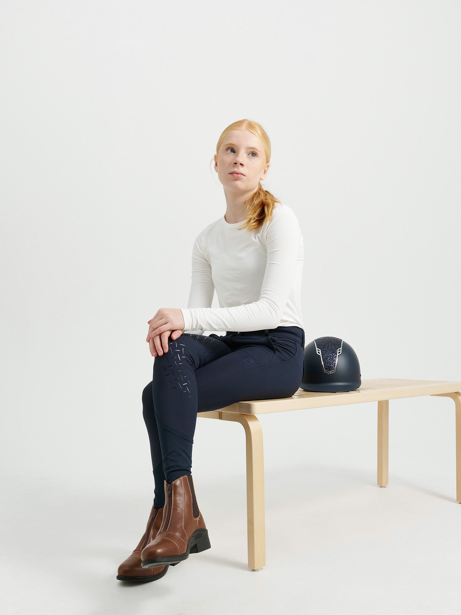 Rigmor är ridbyxan som alla säger "WOW detta är tveklöst den skönaste ridbyxan jag någonsin haft på mig" när dom provar dom. Den här wowiga ridbyxan vill du alltså inte missa. Rigmor är sadelskuren och vår helskodda variant har silicon baktill för att ge dig det bästa greppet. Rigmor ridbyxa finns både helskodda och knäskodda samt i fyra olika färger: svart, brun, marin och grå. Elastiskt lättviktsmaterial som gör att byxan känns lätt på kroppen. 4-vägsstretch. Vattenavisande. Snabbtorkande och UV-skydd. Fickor fram och lycra vid benslut. PASSFORM: Slim fit