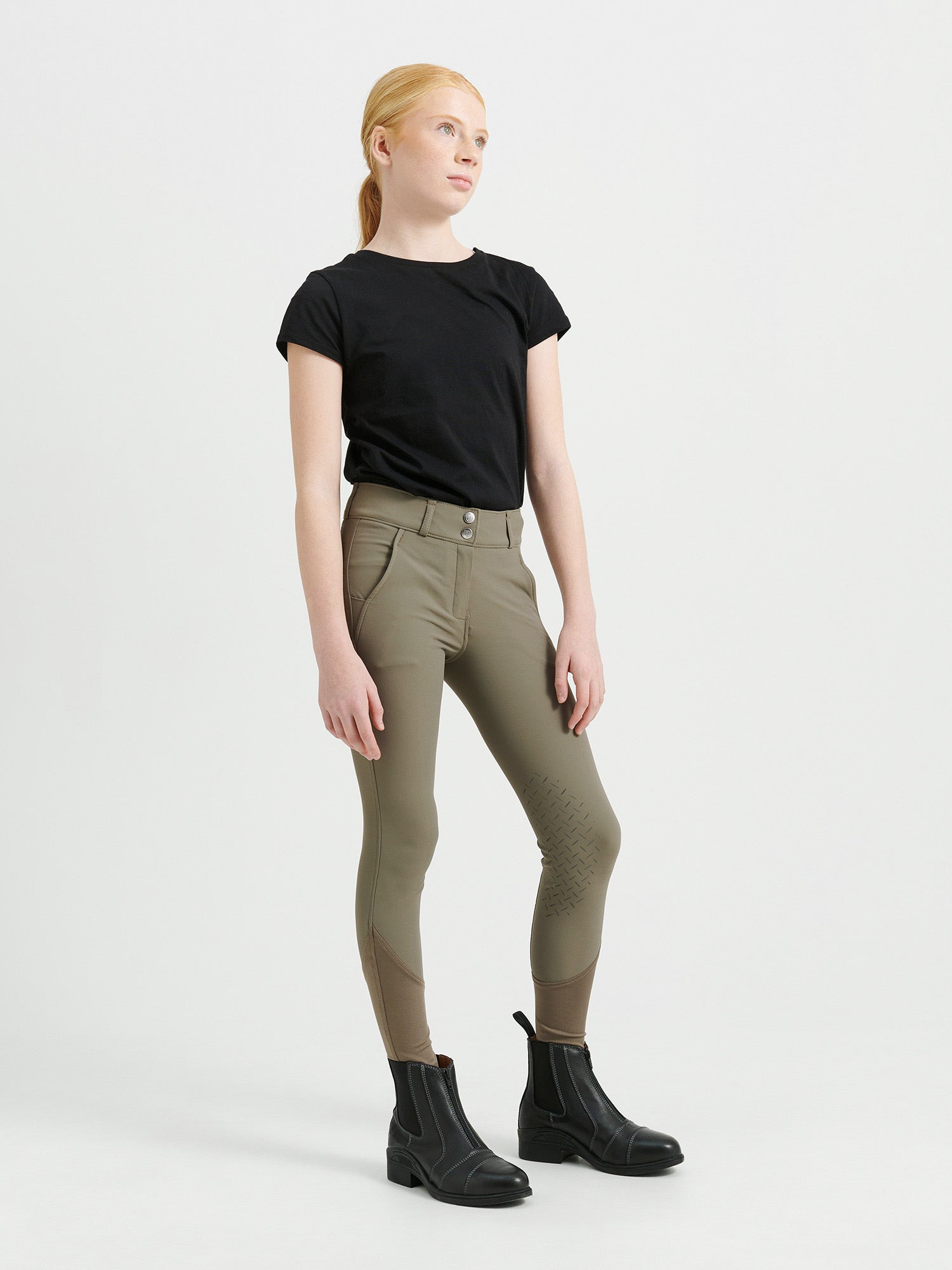 Snygg sadelskuren ridbyxa med skön passform. Silicon vid knä för bra grepp. Elastiskt lättviktsmaterial med 4-vägs stretch. Materialet är vattenavvisande, snabbtorkande och med UV-skydd. Fickor fram och lycra vid benslut. Innerbenslängd ca 72cm.