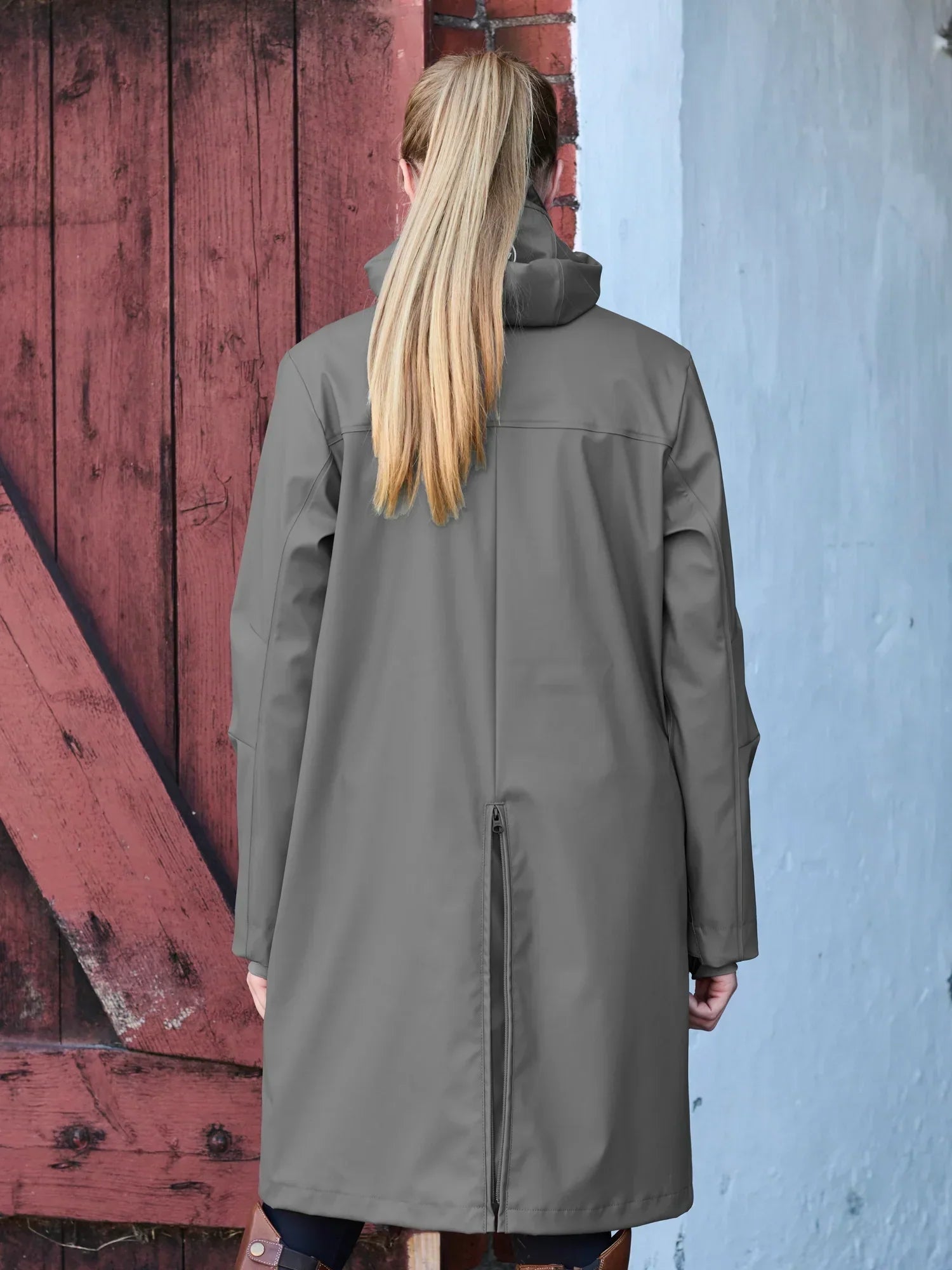 - Lång vattentät regnkappa i smidigt PU-material
