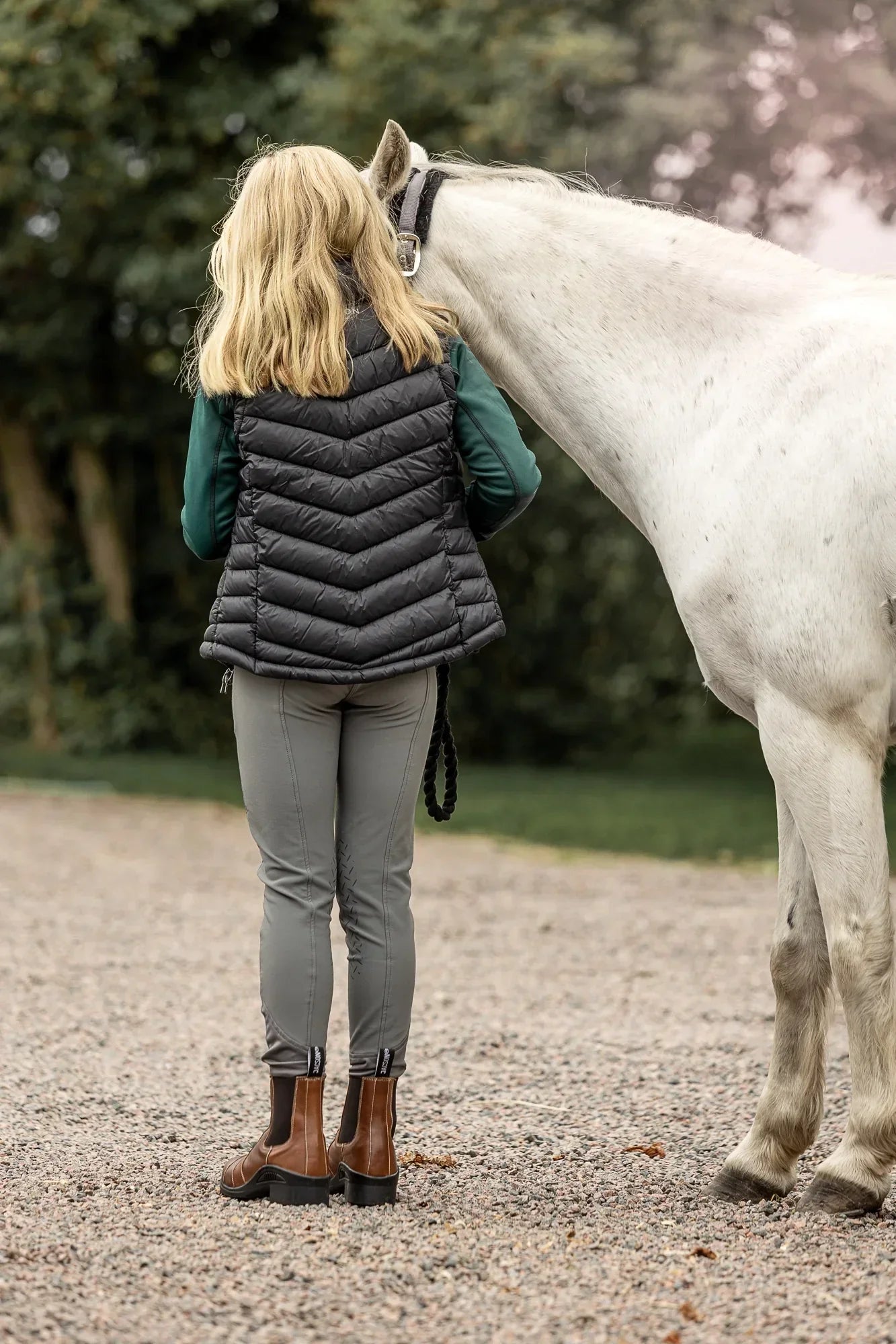 - Sadelskuren design: Rigmor är sadelskuren och vår knäskodda variant har silicon baktill för att ge dig det bästa greppet under ridningen.