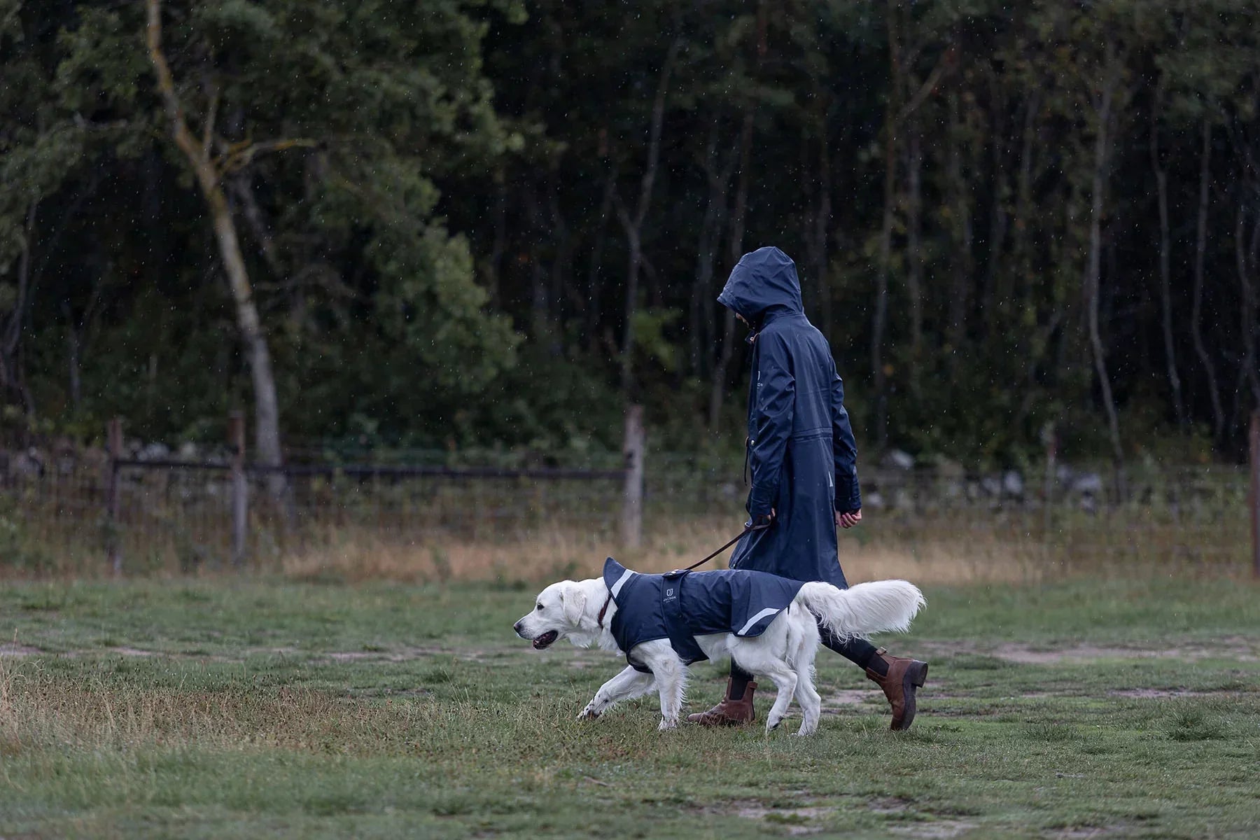 Den här vattentäta hundtäcke är tillverkat i mjukt och följsamt material och har reflekterande detaljer samt elastiska bensnören. Med en vattenpelare på 5000 mm håller det din hund torr i regnet. Täcket är fodrat med fleece för extra värme och har en praktisk magplatta som stängs med kardborre över ryggen. Observera att produkten tillhör Jacsons Pre-Loved Sortiment, vilket innebär att den kan ha använts tidigare eller ha mindre skönhetsfel. Genom att välja dessa produkter bidrar du till Jacsons hållbarhetsarbete, vilket underlättar att minska klädavfall och förlänger livslängden på kläder.