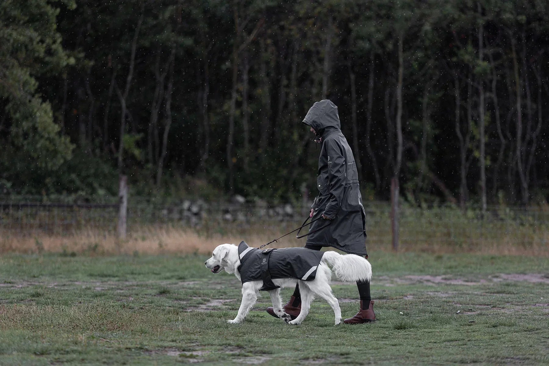 Den här vattentäta hundtäcke har tillverkats av mjukt och följsamt material, vilket gör det både bekvämt och praktiskt för din hund. Med en vattenpelare på 5000 mm, reflekterande detaljer och elastiska bensnören, erbjuder täcket både skydd och synlighet. Insidan är fodrad med fleece för extra värme, och den praktiska magplattan stängs enkelt med kardborre över ryggen. Observera att denna produkt tillhör Jacsons Pre-Loved Sortiment, vilket innebär att den kan ha använts tidigare eller ha mindre skönhetsfel. Genom att välja dessa produkter bidrar du till Jacsons hållbarhetsarbete och underlättar att minska klädavfall.