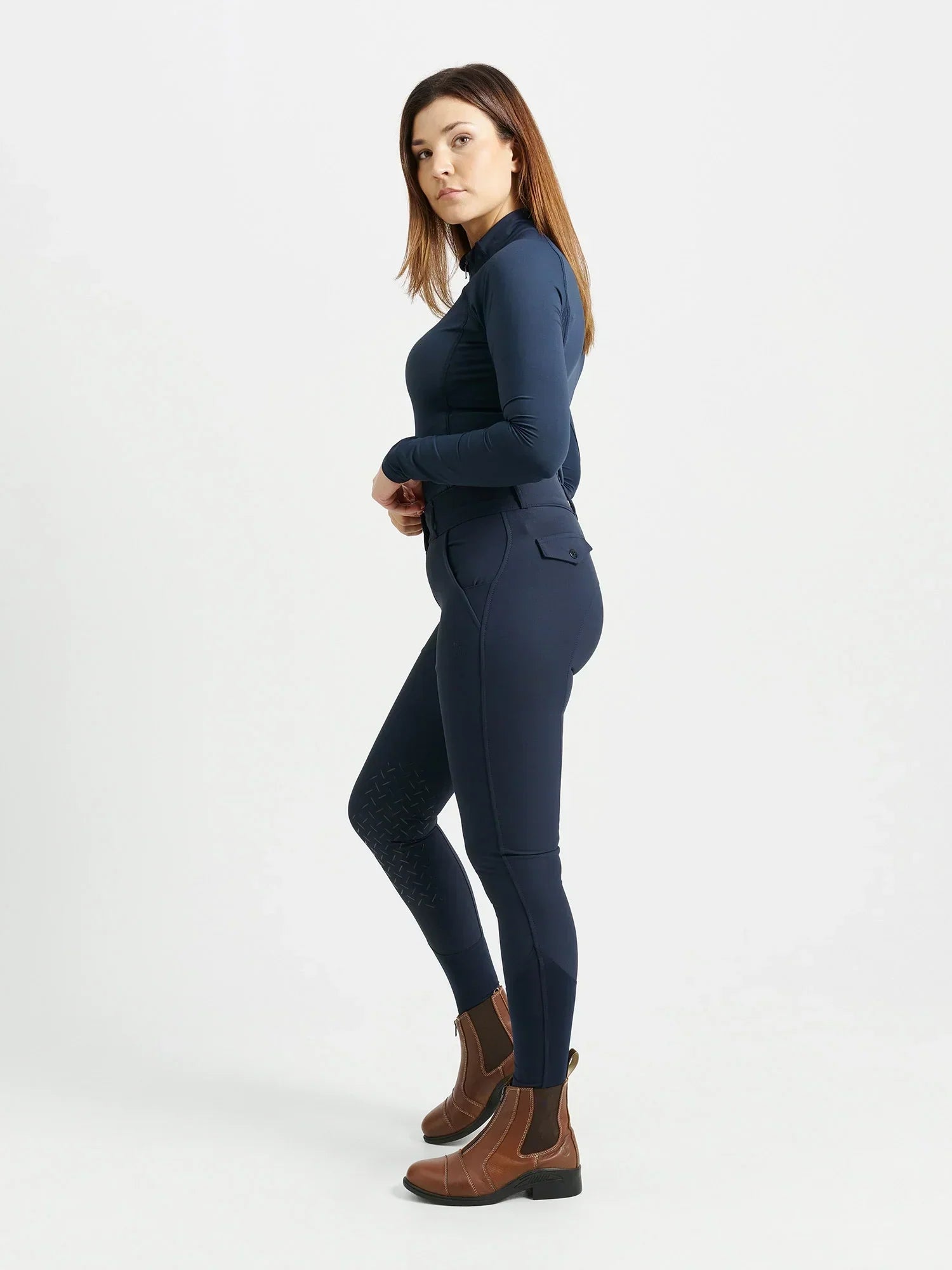 - Elastiskt Lättviktsmaterial : Ger en lätt och smidig känsla på kroppen, perfekt för ridning.